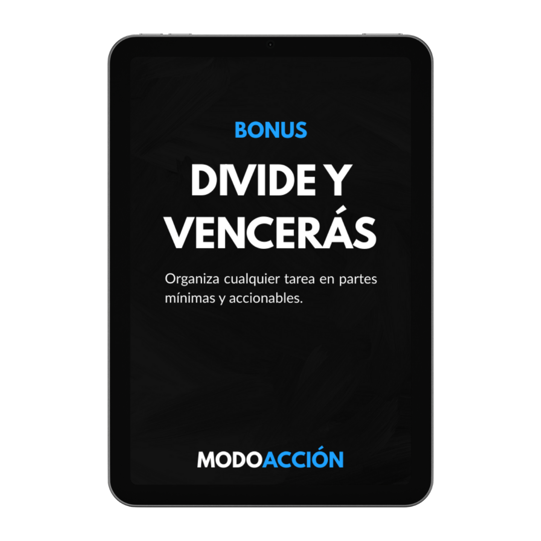 Modo Acción es un sistema simple pero contraintuitivo para salir del bloqueo mental, dejar de postergar y recuperar el control de tu tiempo y tu vida en menos de una hora al día.